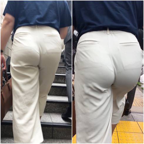 柔らかそうな尻肉を揺らしながら歩く着衣尻をご覧ください。4人目は、外人にも負けないMEGA級尻を持ち、それを惜しげも無く晒すOLさん。
