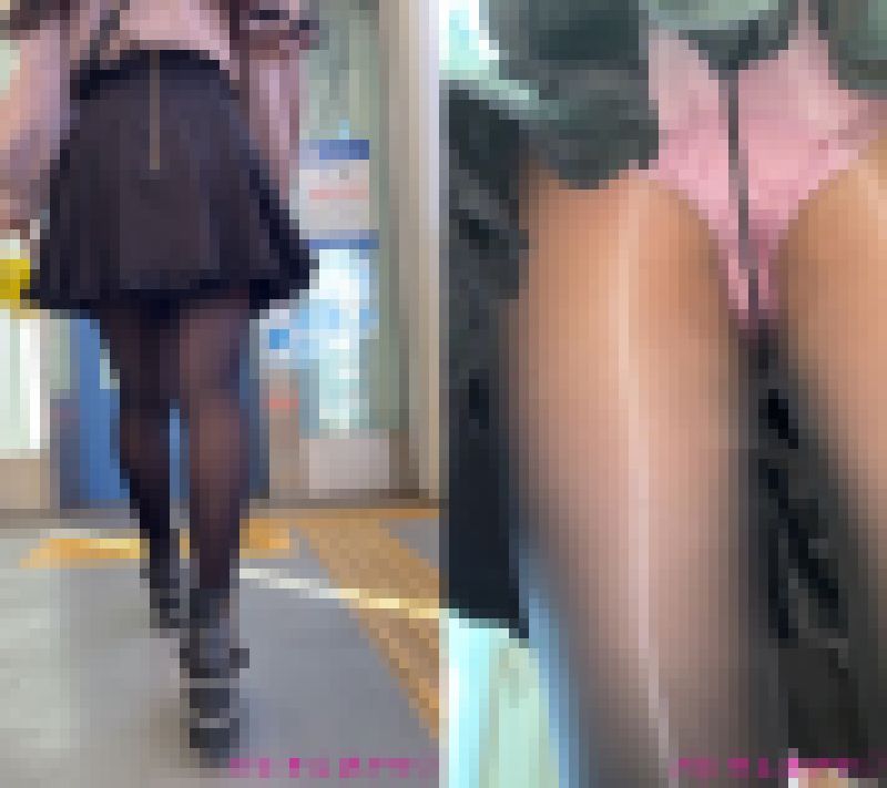 【光沢黒パンスト】スカート差し込み 地雷系女子 帰路 電車 追跡撮り