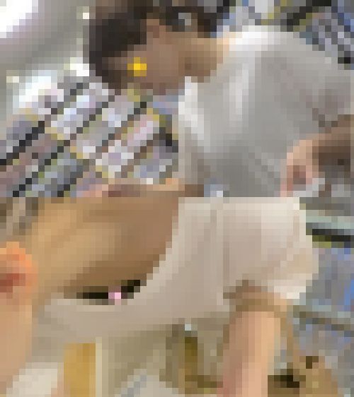 永野○郁ちゃん似の美人さん。レンタルDVD屋さんで商品選びに夢中になって無防備に前屈み。白いTシャツの僅かな隙間から可愛いちっぱいを果敢に狙います。警戒心ゼロだったので至近距離から長時間張り付いちゃいました。2人目