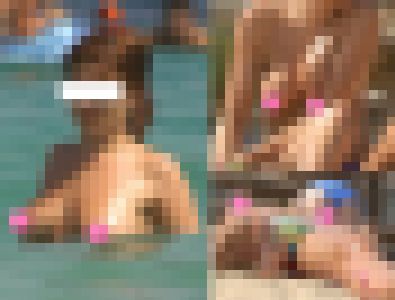 新作になります。海水浴場の海の中にいた、可愛いお顔の巨乳さん。