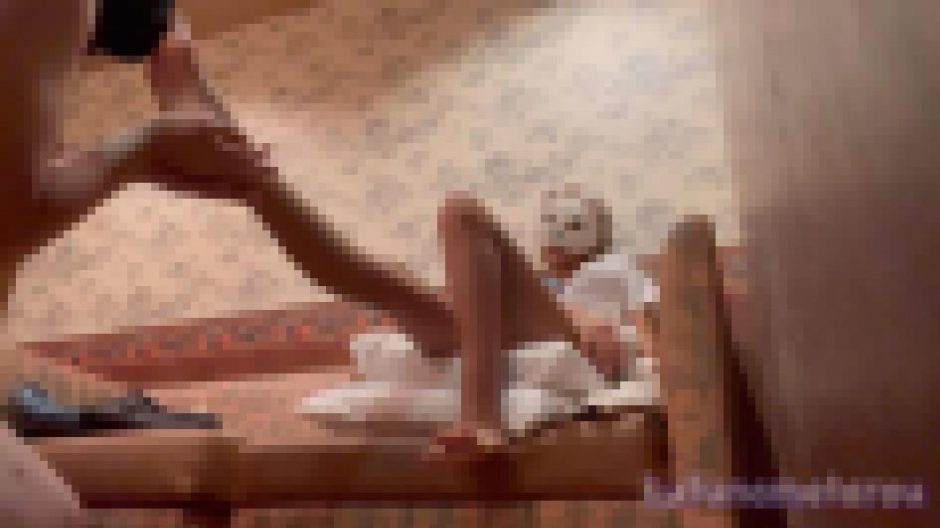 パンスト足裏も舐めさせ上からニヤニヤしながらM男を見下し