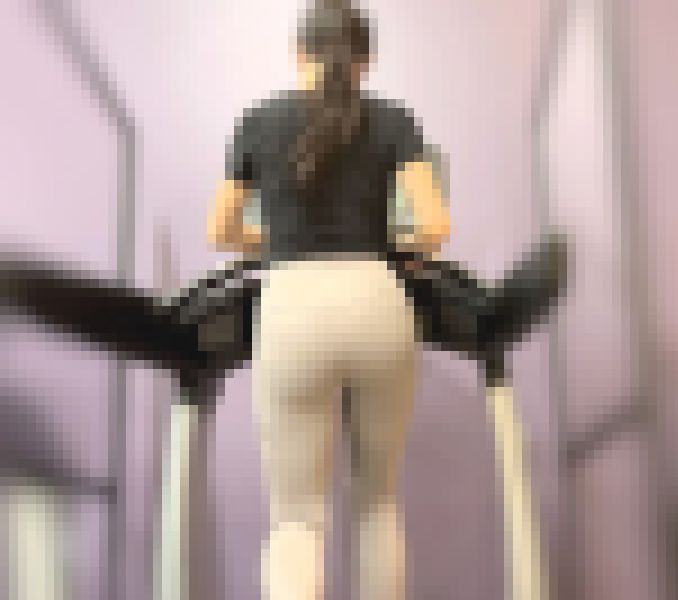 早速トレッドミルにてウォーキングを開始したので背後に近づいてプロポーションをチェックすると、165cm~はある長身で手足が長くて均整の取れたボディが魅力的です。