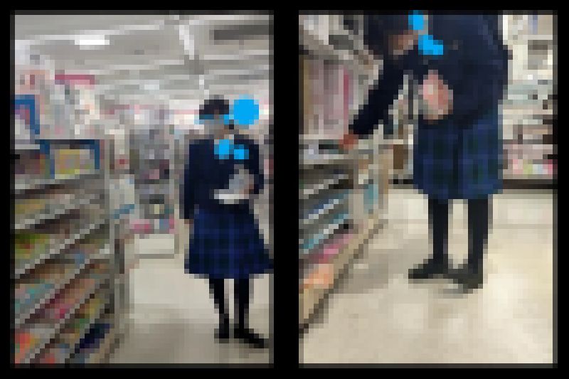 【スマホで逆さ撮り68】制服姿の真面目地味系J〇 買い物中に黒タイツ越しのパンティ撮られる【素人撮影】