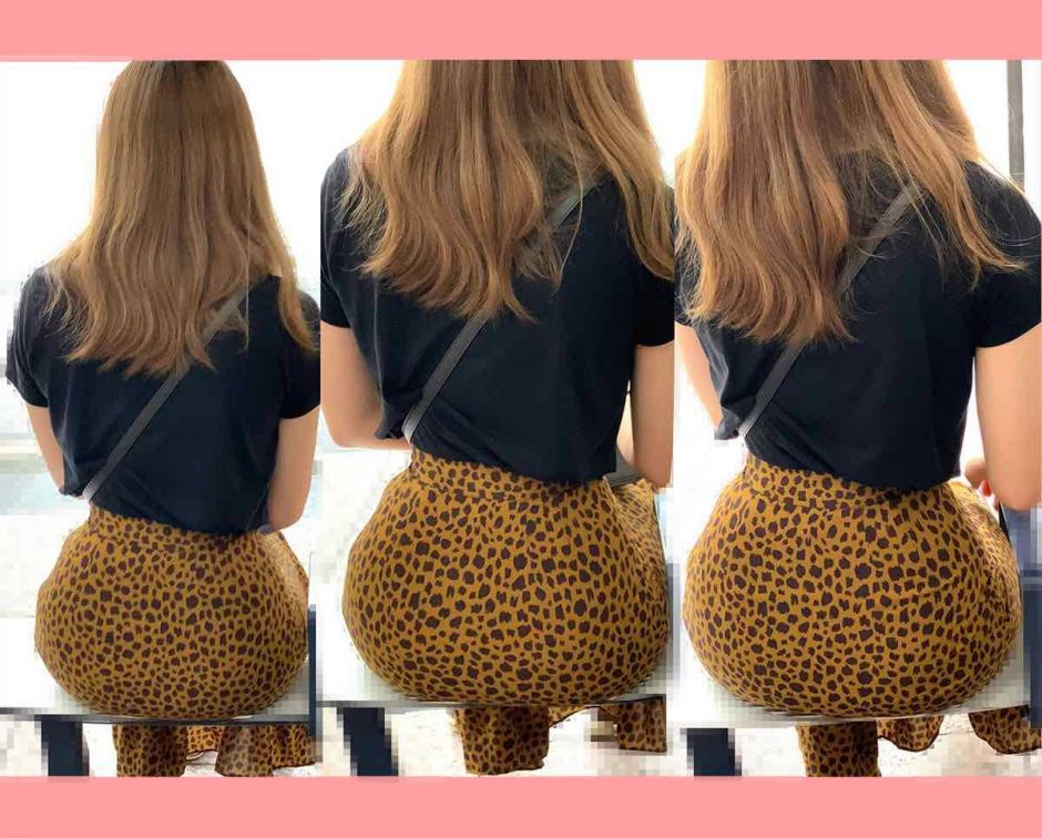 このお姉様、極薄の生地のスカートでお尻の形が丸わかり、もう全身からエロさ漂っています♪