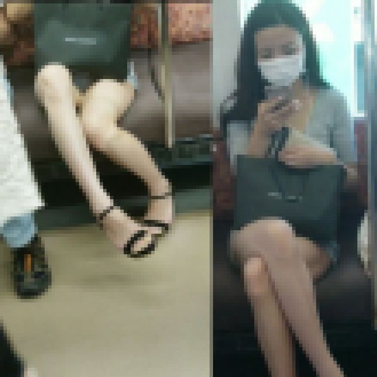 電車では足を組んでガードしてますが降車時にガッツリ白生が!!!