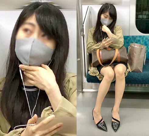 終電間際の電車内に乗るとハンパない美脚を待つ美女を発見。ブランド物のバッグを持って深夜にお出かけとはどこかの高級クラブにお勤めなのでしょうか。一般人とは違った極上のオーラを感じます。