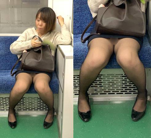黒ストッキングがエロい!短すぎるスカートを穿いて無防備に座るエロいお姉さん(其の六)
