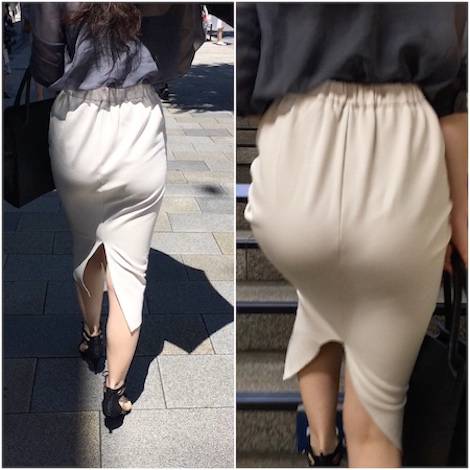 ナイスボディーであり、エロいモチモチなお尻であり、そのお尻感を存分に楽しめる様に履きこなした着衣尻は最高です。高級なお姉さんが履いていそうな、ストレッチの効いたタイトスカート。
