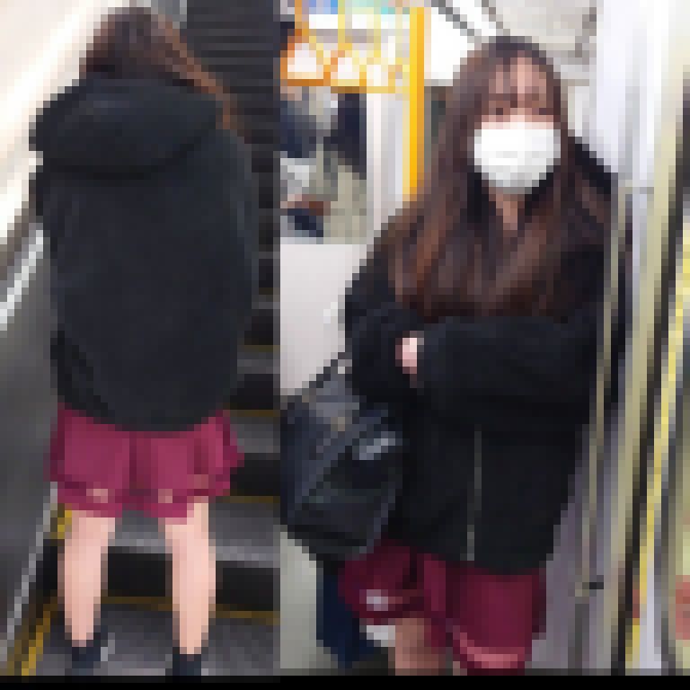 向かう最中に車内で物色中スカートを履いた美人さんを発見!姿撮りをし、降りる駅を追跡しようとしたら目的地が同じでした!!笑