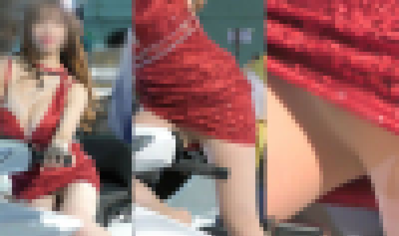 まさかのこんなに美しいお姉さんのスリット美脚越しの隙間からお目見えできるとは思いませんでした^^;